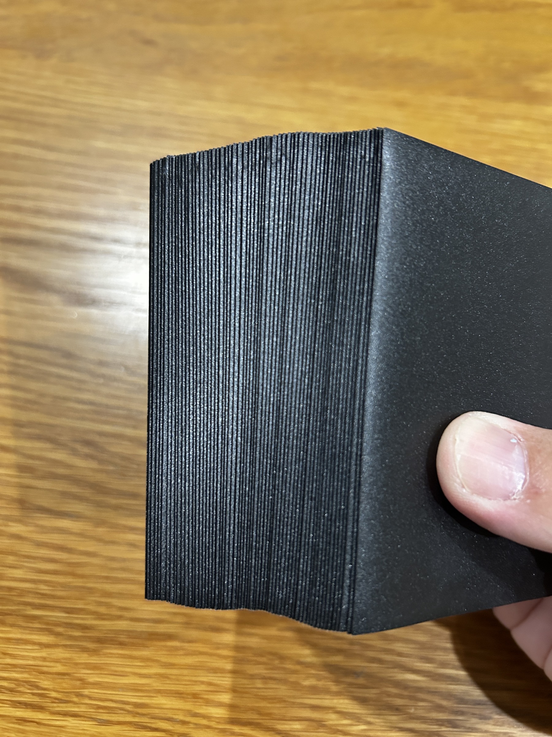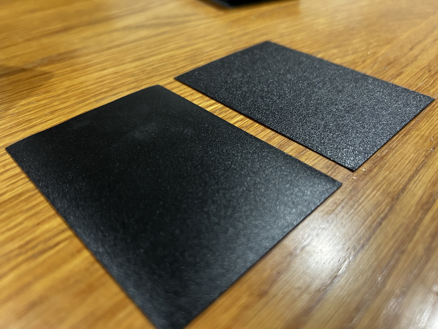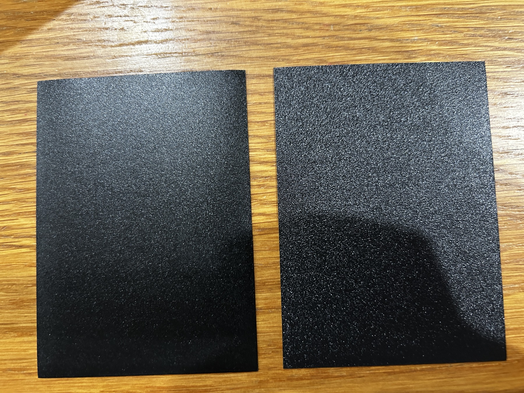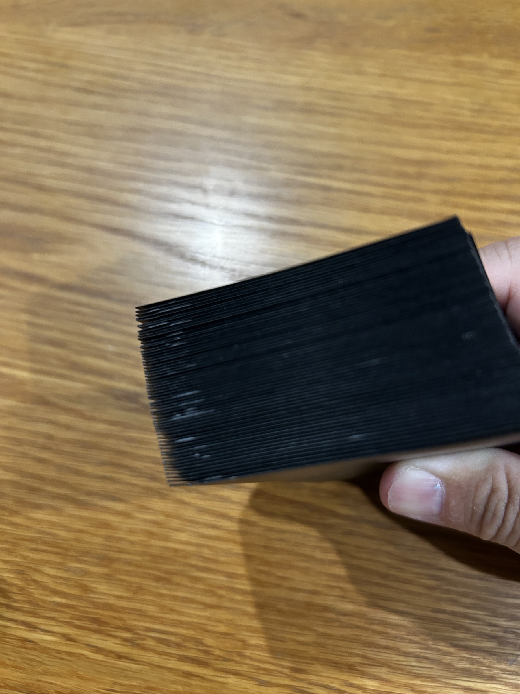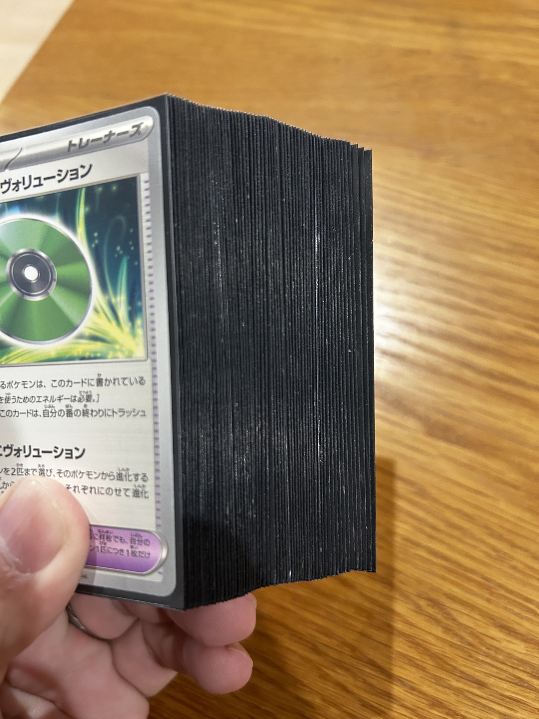 1枚ではごく僅かだけど、それが60枚にもなると意外変わってくるので、手の収まりとシャッフルのし易さが格段に向上します。